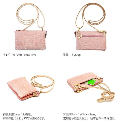Detail 商品説明 ■素材:牛革・綿 ■サイズ:W19× H12× D3(cm) ■重量:約200g 一度使ったら手放せない、その便利さで只今人気急上昇中の「お財布バッグ」。